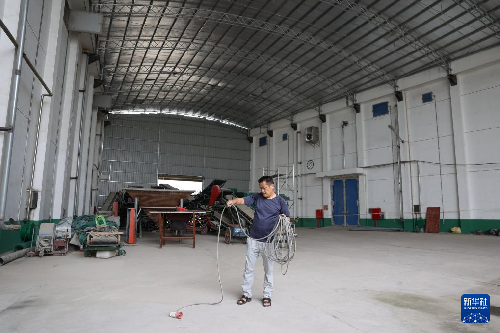 王濤在查看自己的農機。新華社記者程濟安 攝