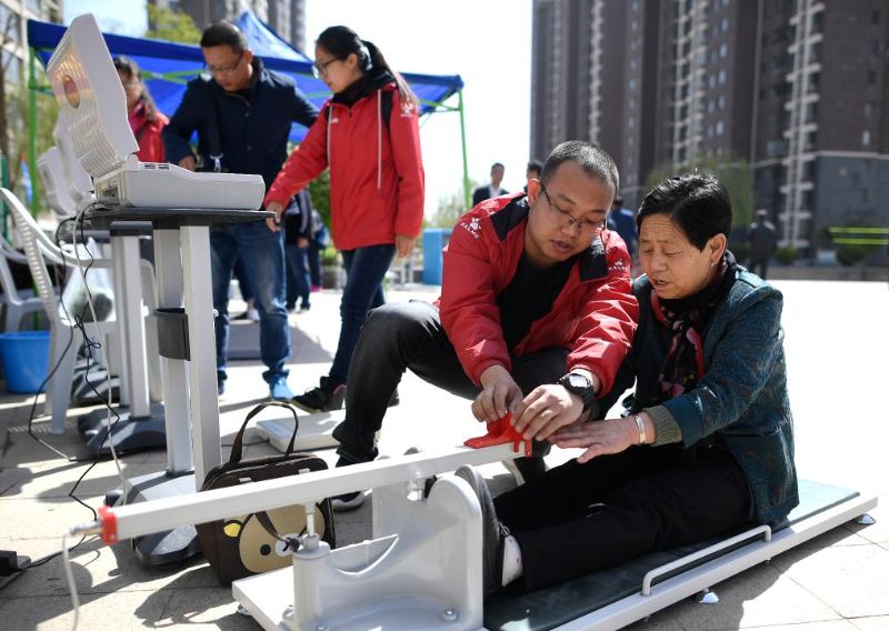 資料圖:2018年4月14日,社區居民在進行體質監測。新華社記者王鵬攝