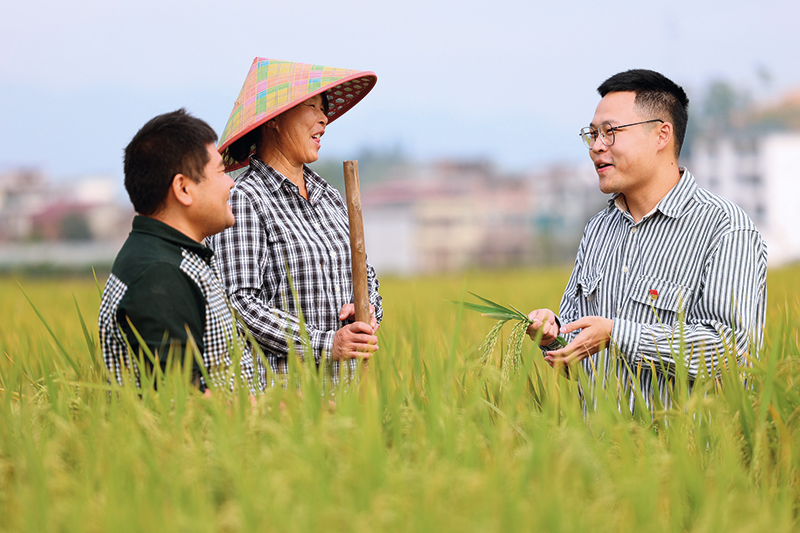 湖南省邵陽市洞口縣組織干部走進田間地頭,聽民聲、紓民困,走好晚稻抗旱保收“最后一公里”(2022年10月攝) 劉金漢攝