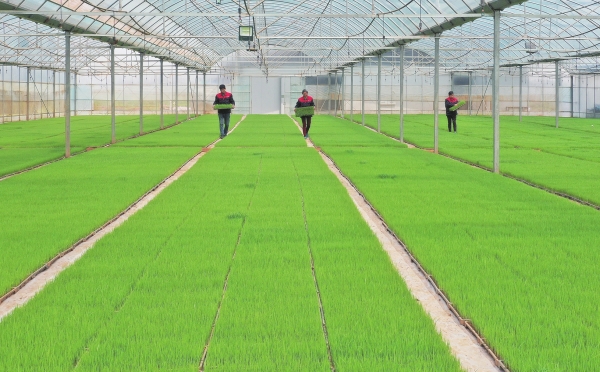 3月27日,祁東縣歸陽鎮幸福村煜東種植養殖專業合作社,大棚秧苗長勢喜人。今年,該縣計劃完成糧食播種面積104.09萬畝,其中早稻種植面積32萬畝以上,早稻集中育秧面積24.2萬畝以上。 陳延上 曾煒煜 攝影報道(湖南圖片庫)