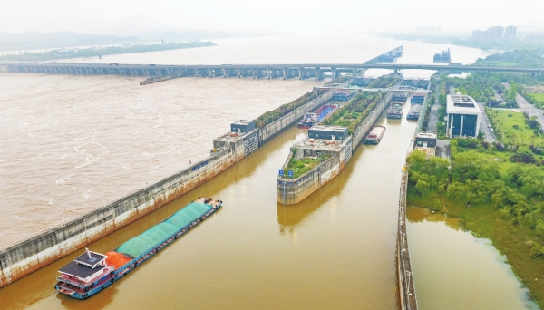 4月7日,船舶有序通過長沙湘江綜合樞紐船閘。當天,省水利廳啟動洪水防御Ⅳ級應急響應。湖南日報全媒體記者 辜鵬博 通訊員 唐晗博 攝影報道
