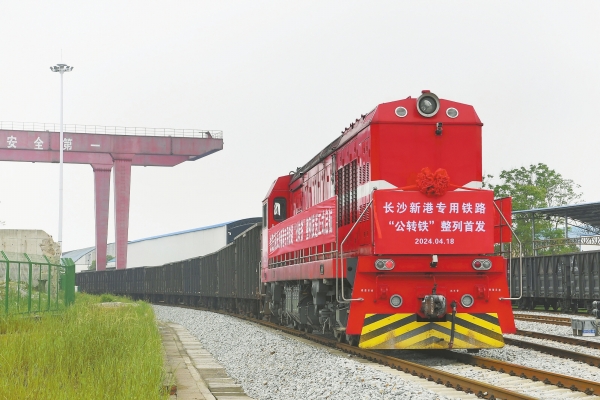 4月18日,省港航水利集團所屬城陵磯港口集團長沙新港專用鐵路完成“公轉鐵”整列發送業務首發。