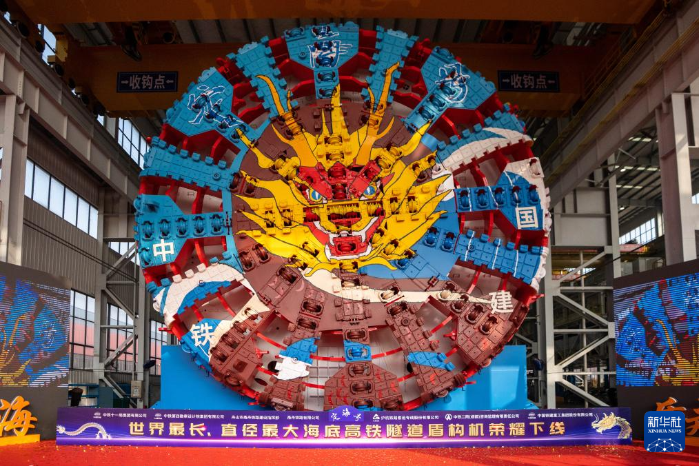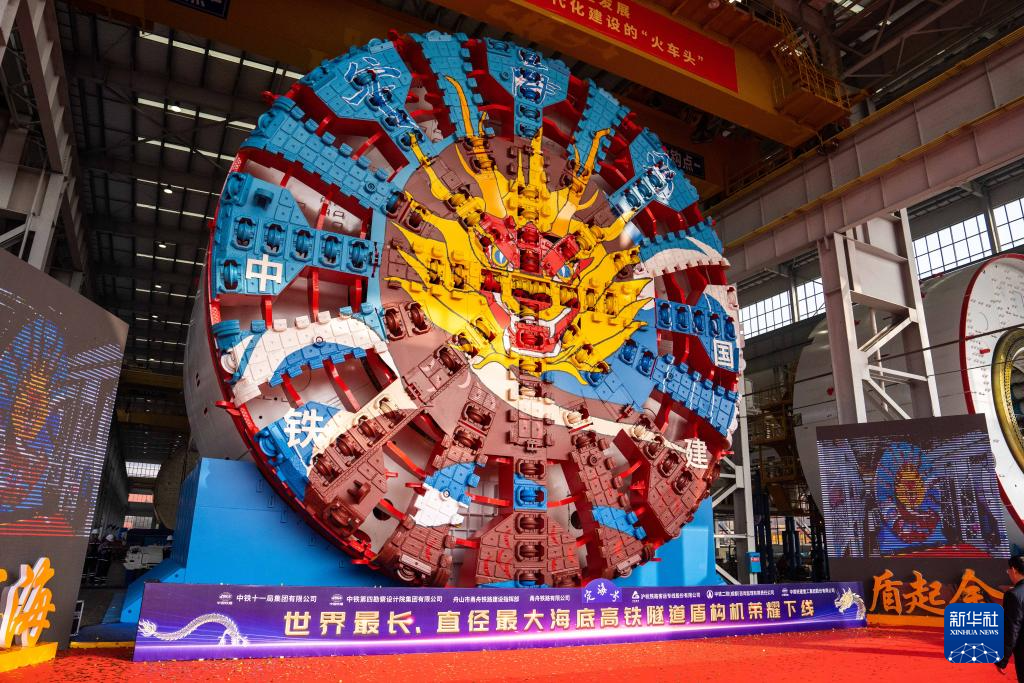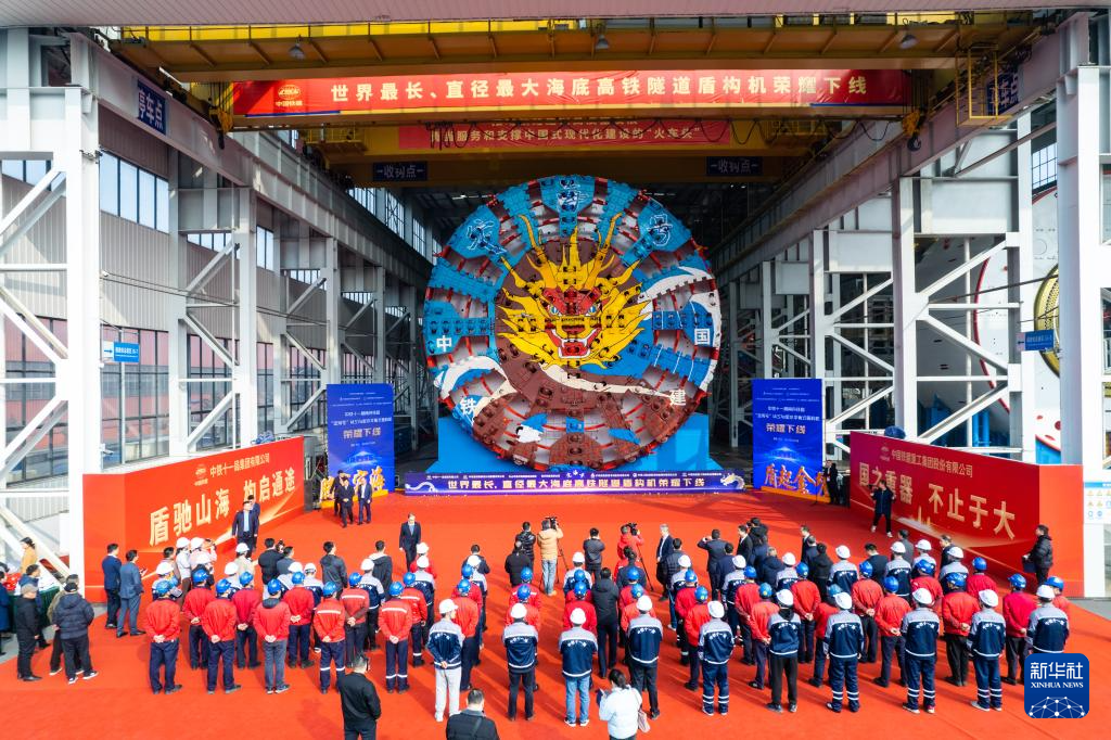2024年1月10日,超大直徑盾構機“定海號”在鐵建重工長沙第一產業園順利下線。新華社記者 陳思汗 攝