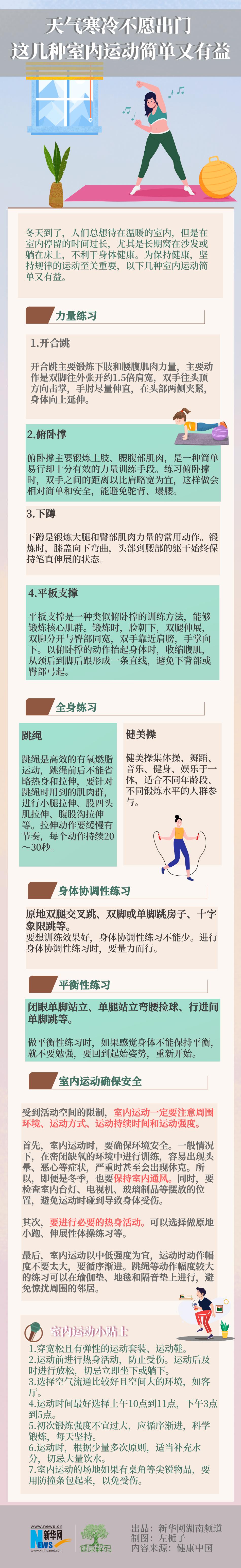 天氣寒冷不愿出門 這幾種室內運動簡單又有益-新華網