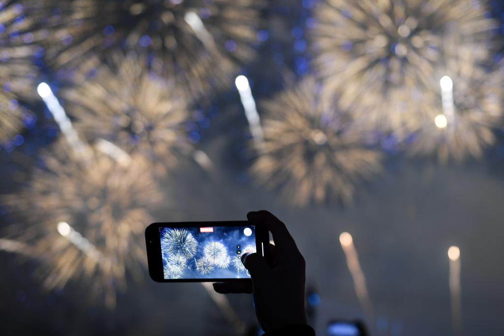 10月24日,觀眾在拍攝煙花表演。新華社記者 陳振海 攝pagebreak