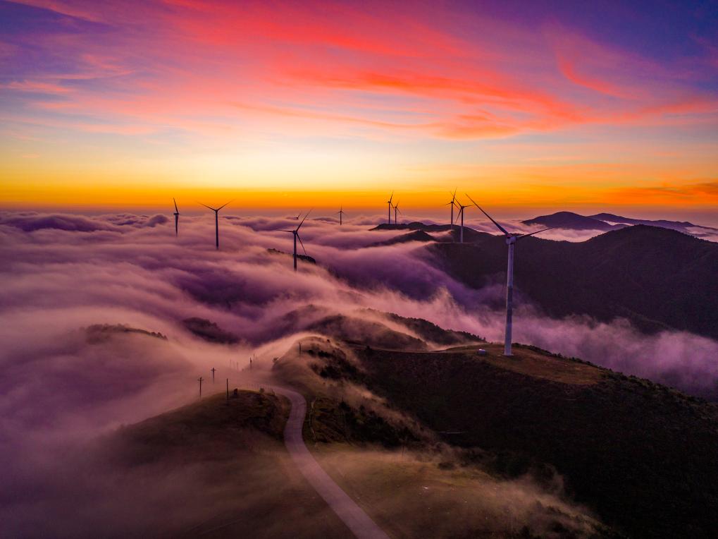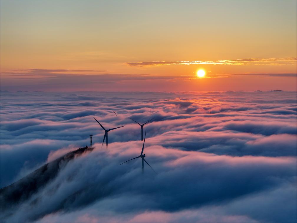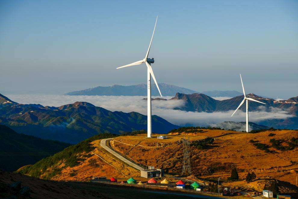 華電新能湖南分公司仰天湖風電場。秋色浸染,風車點綴在五彩斑斕的山野之間。(華電新能湖南分公司 供圖)pagebreak